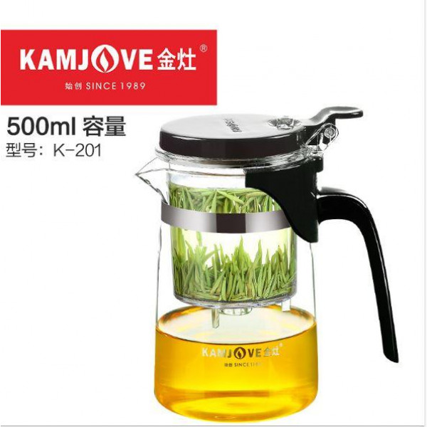 Скляний чайник для заварювання з кнопкою Kamjove K-201 (типод) — це дуже зручний і простий у використанні заварювальний чайник об'ємом 500 мл, у якому можна заварювати різні типи чаю. Заварювальний чайник із кнопкою складається з 2 частин. Це зовнішня колба зі зручною ручкою та заварювальна колба, яка легко прикріплюється до глечика одним рухом. Зовнішня колба чайника виготовлена з високоякісного та термостійкого скла. Заварювальна колба виготовлена зі спеціального екологічно чистого харчового пластику, має металеву сіточку-фільтр і спеціальний клапан керований кнопкою на кришці. Об'єм внутрішньої заварювальної колби становить 210 мл. Скляні стінки ємності чайника для заварювання дають змогу спостерігати за процесом і контролювати ступінь готовності напою. Заварник (типод) Kamjove K-201 підходить для використання вдома, в офісі або відрядженні. Чайник за потреби розбирається й легко миється. Цей дивовижний заварник (типод), дасть змогу по-справжньому розкрити всі смакові тонкощі завареного в ньому чаю, чим подарує безліч приємних моментів.